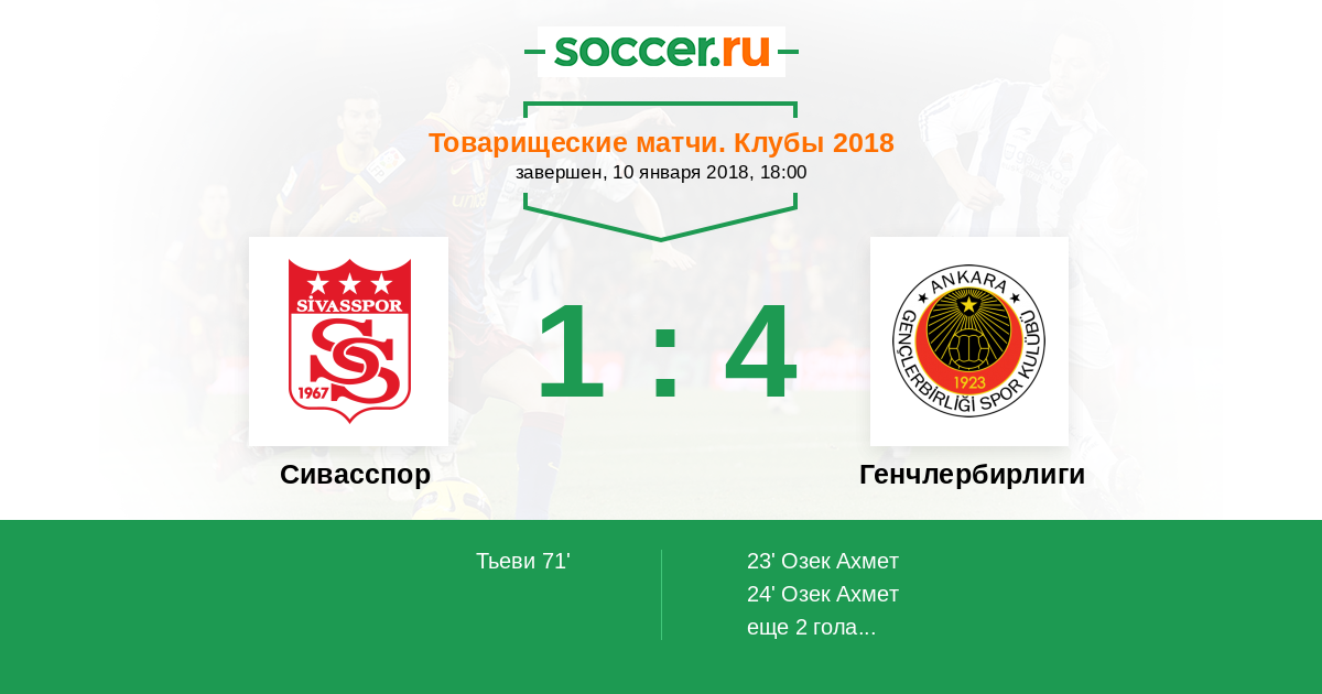 Сивасспор - Генчлербирлиги: обзор матча 10 января 2018