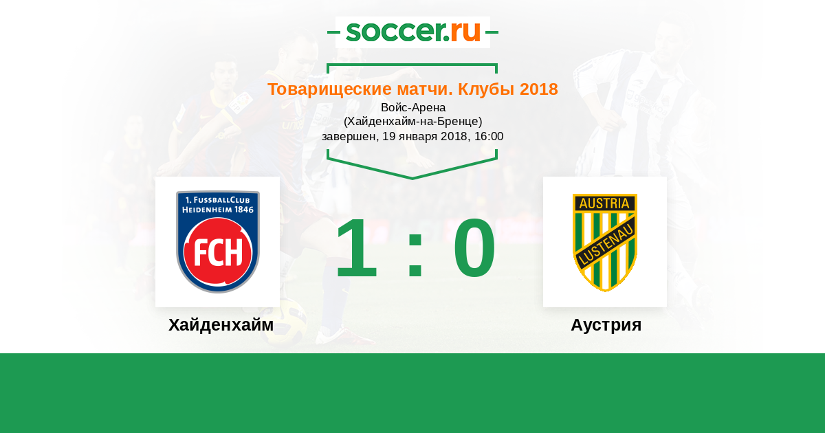 Хайденхайм - Аустрия: обзор матча 19 января 2018