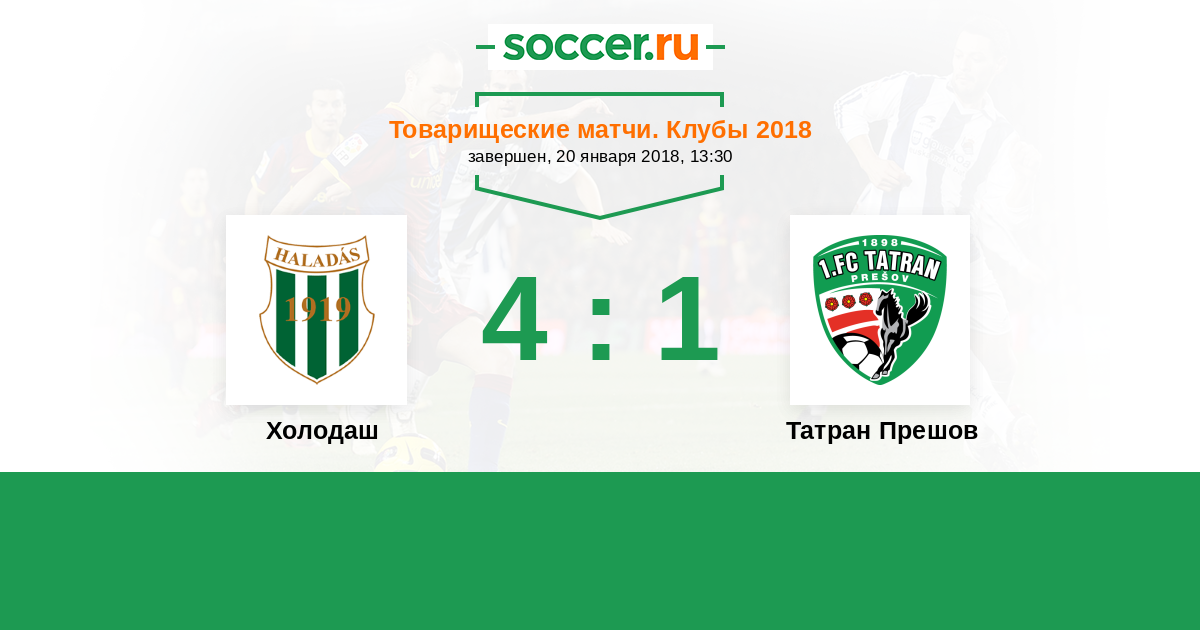 Холодаш - Татран Прешов: обзор матча 20 января 2018
