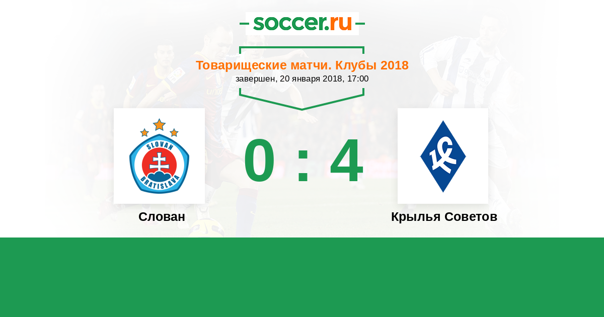 Слован - Крылья Советов: обзор матча 20 января 2018