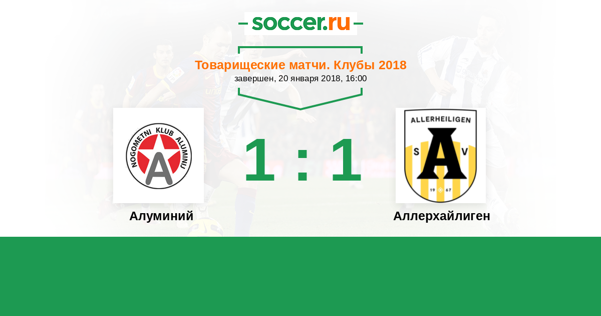 Алуминий - Аллерхайлиген: обзор матча 20 января 2018