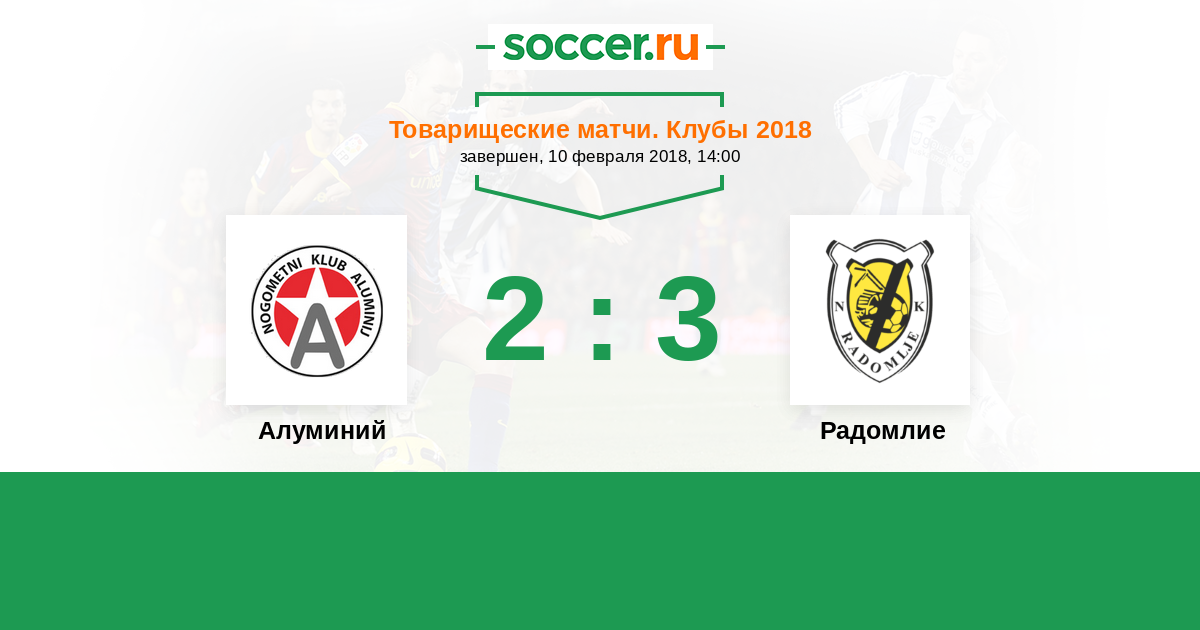 Алуминий - Радомлие: обзор матча 10 февраля 2018