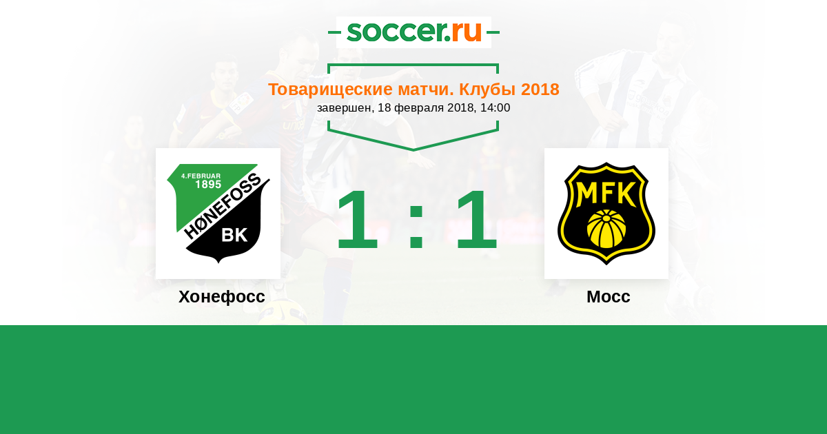 Хонефосс - Мосс: обзор матча 18 февраля 2018
