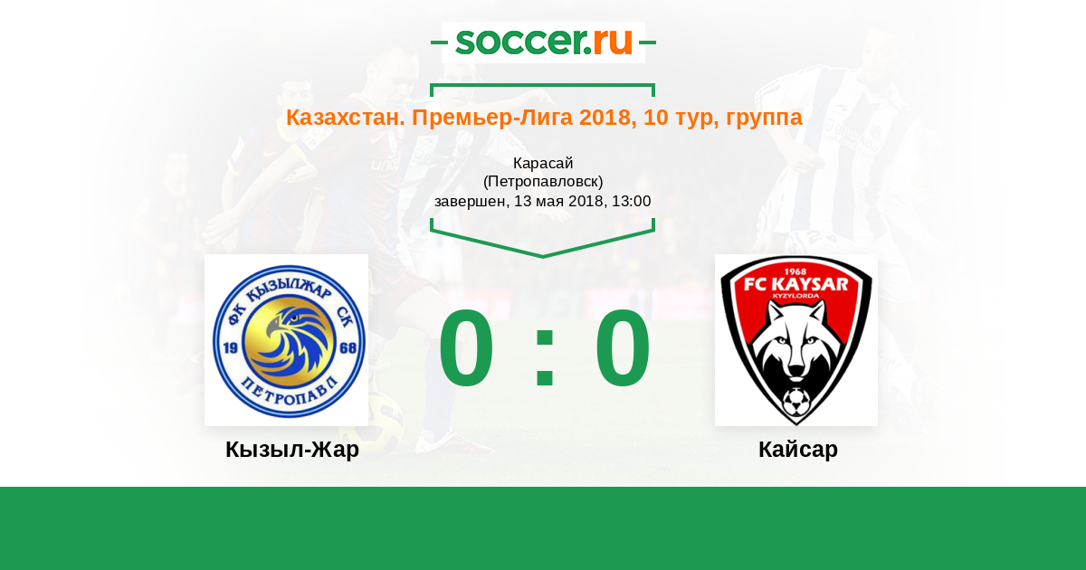 Кызыл-Жар - Кайсар: обзор матча 13 мая 2018