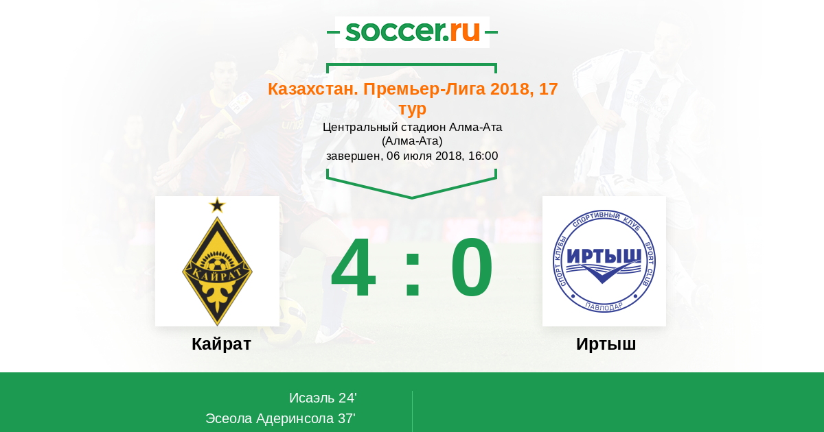 Кайрат - Иртыш: обзор матча 6 июля 2018