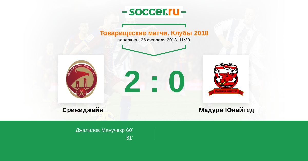 Сривиджайя - Мадура Юнайтед: обзор матча 26 февраля 2018