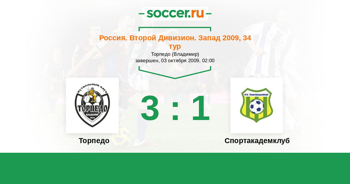Торпедо - Спортакадемклуб: обзор матча 3 октября 2009