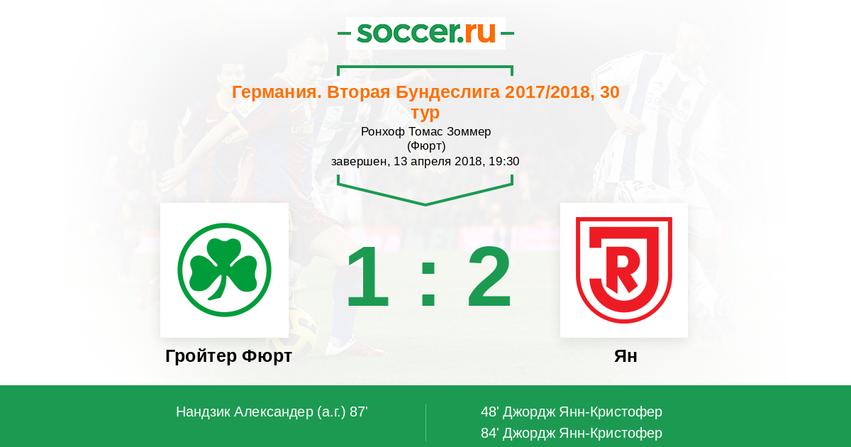 Гройтер Фюрт - Ян: обзор матча 13 апреля 2018