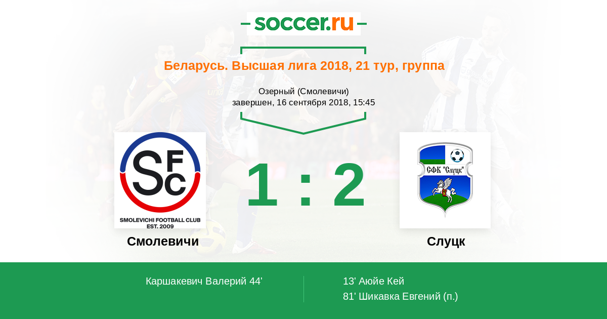 Смолевичи - Слуцк: обзор матча 16 сентября 2018