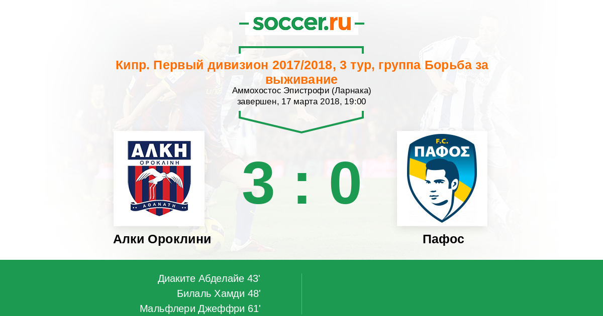 Алки Ороклини - Пафос: обзор матча 17 марта 2018