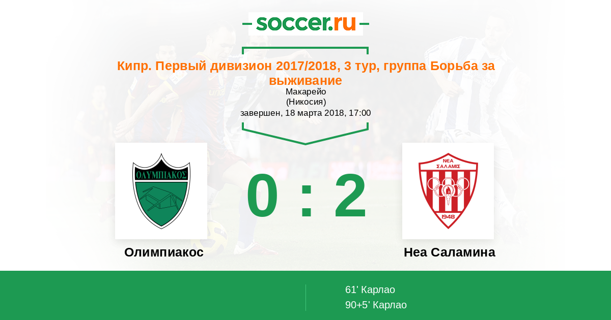 Олимпиакос - Неа Саламина: обзор матча 18 марта 2018