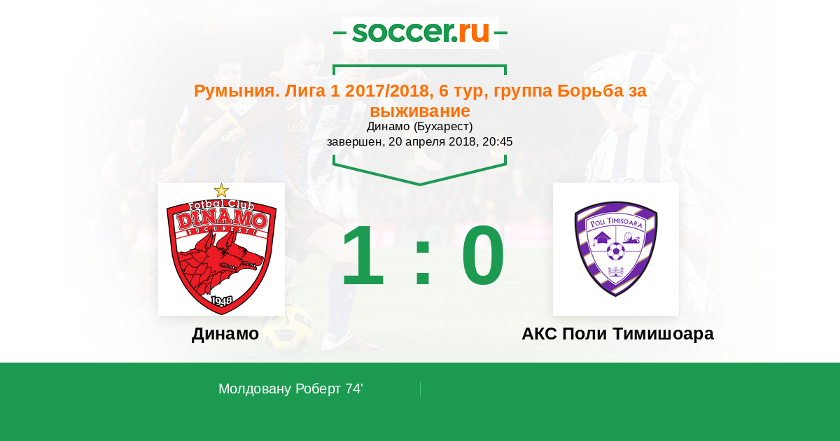 Динамо - АКС Поли Тимишоара: обзор матча 20 апреля 2018