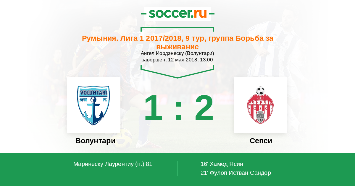 Волунтари - Сепси: обзор матча 12 мая 2018