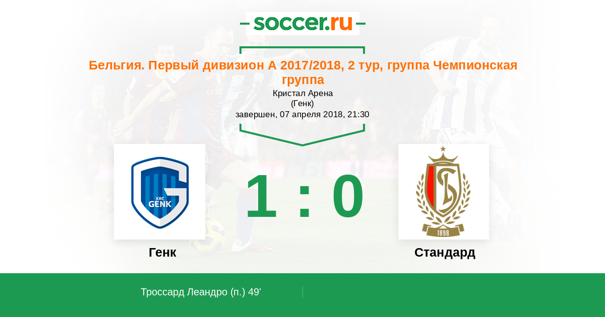 Генк - Стандард: обзор матча 7 апреля 2018