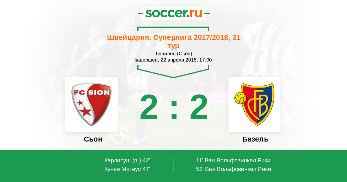 Сьон - Базель: обзор матча 22 апреля 2018