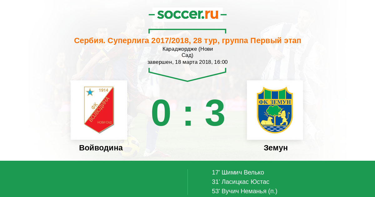 Войводина - Земун: обзор матча 18 марта 2018