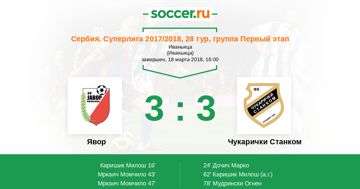Явор - Чукарички Станком: обзор матча 18 марта 2018