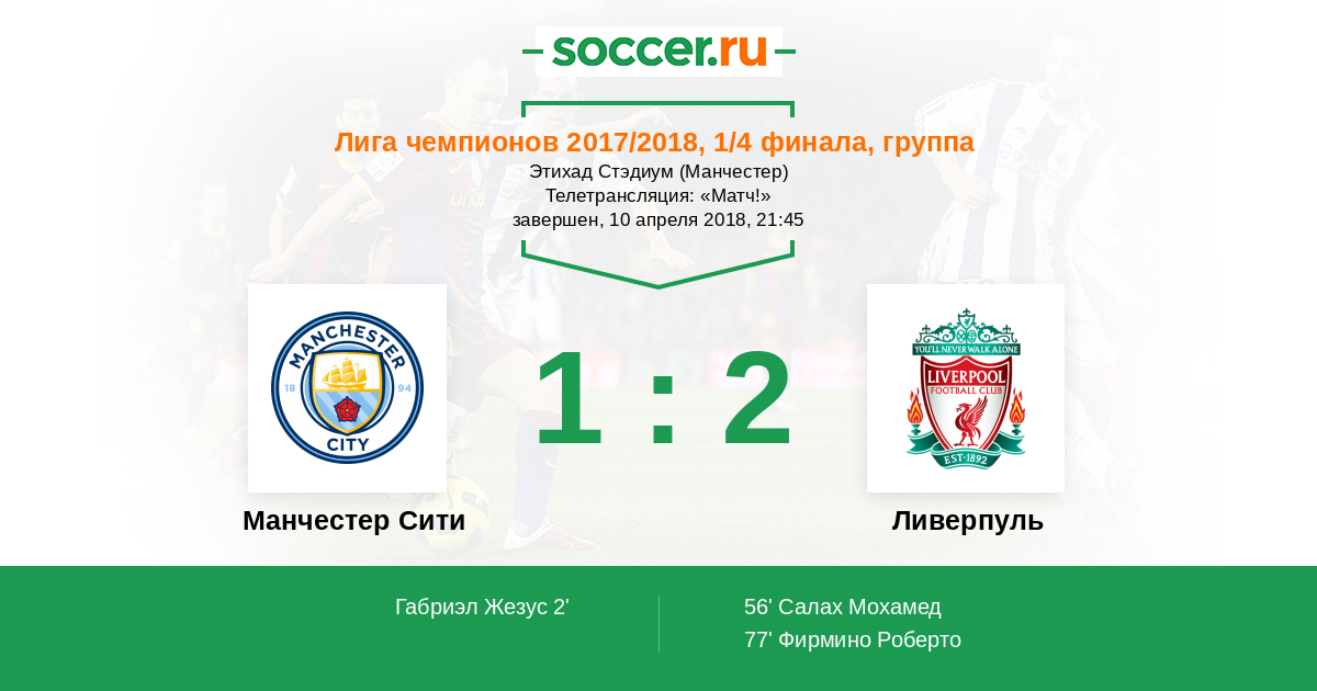 Напомним, что первая встреча завершилась разгромной победой "Ливерпуля" со счетом 3:0. Голы на свой счет записали Мо Салах, Садьо Мане и Алекс Окслейд-Чембрлен.
