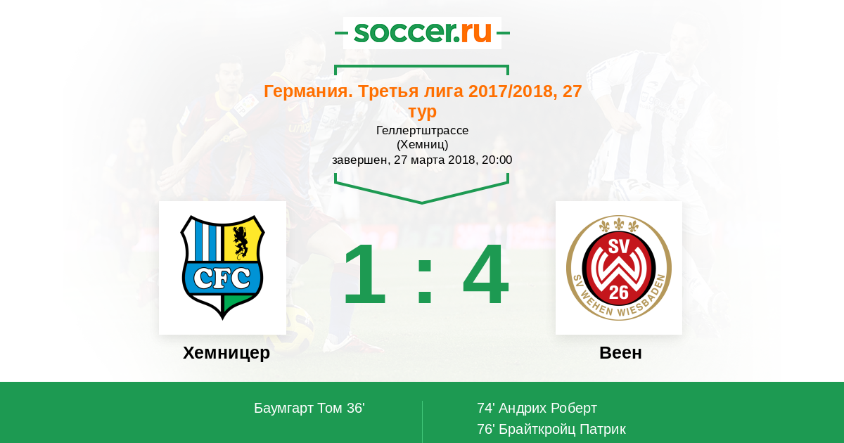 Хемницер - Веен: обзор матча 27 марта 2018