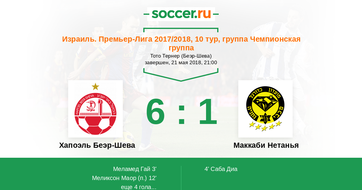 Хапоэль Беэр-Шева - Маккаби Нетанья: обзор матча 21 мая 2018