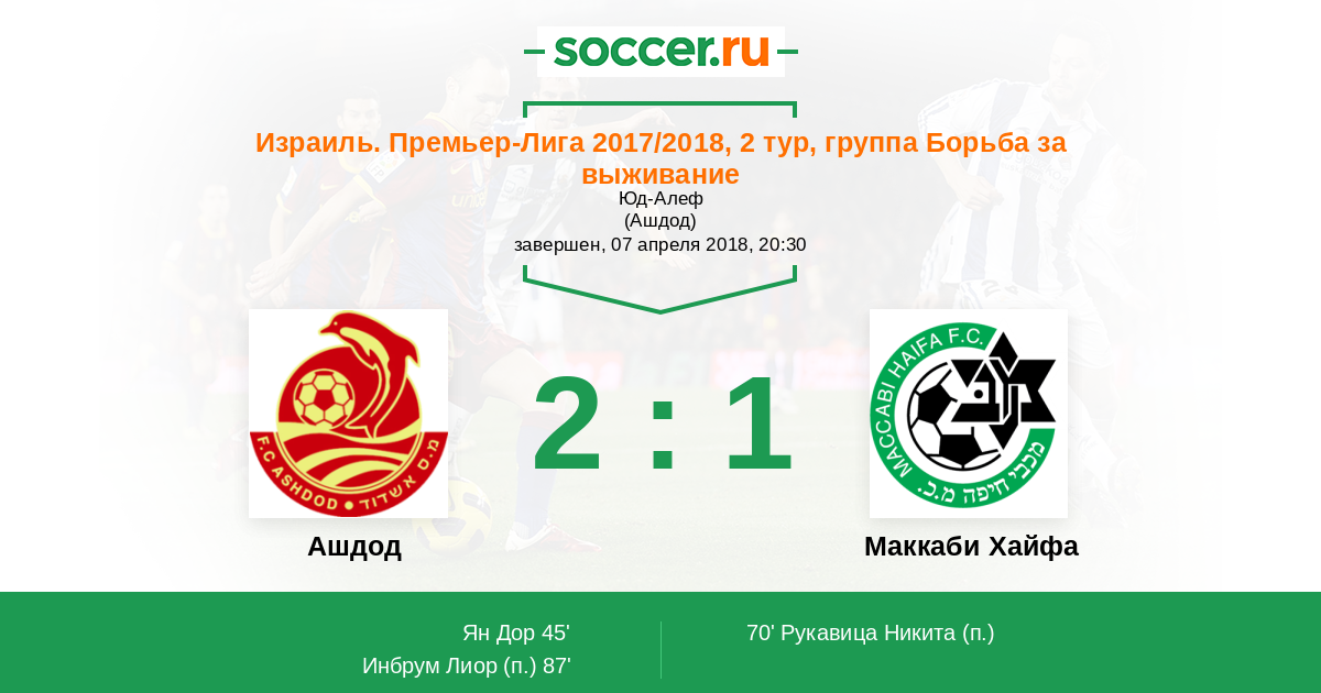 Ашдод - Маккаби Хайфа: обзор матча 7 апреля 2018