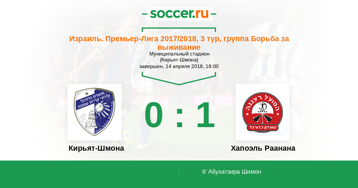 Кирьят-Шмона - Хапоэль Раанана: обзор матча 14 апреля 2018