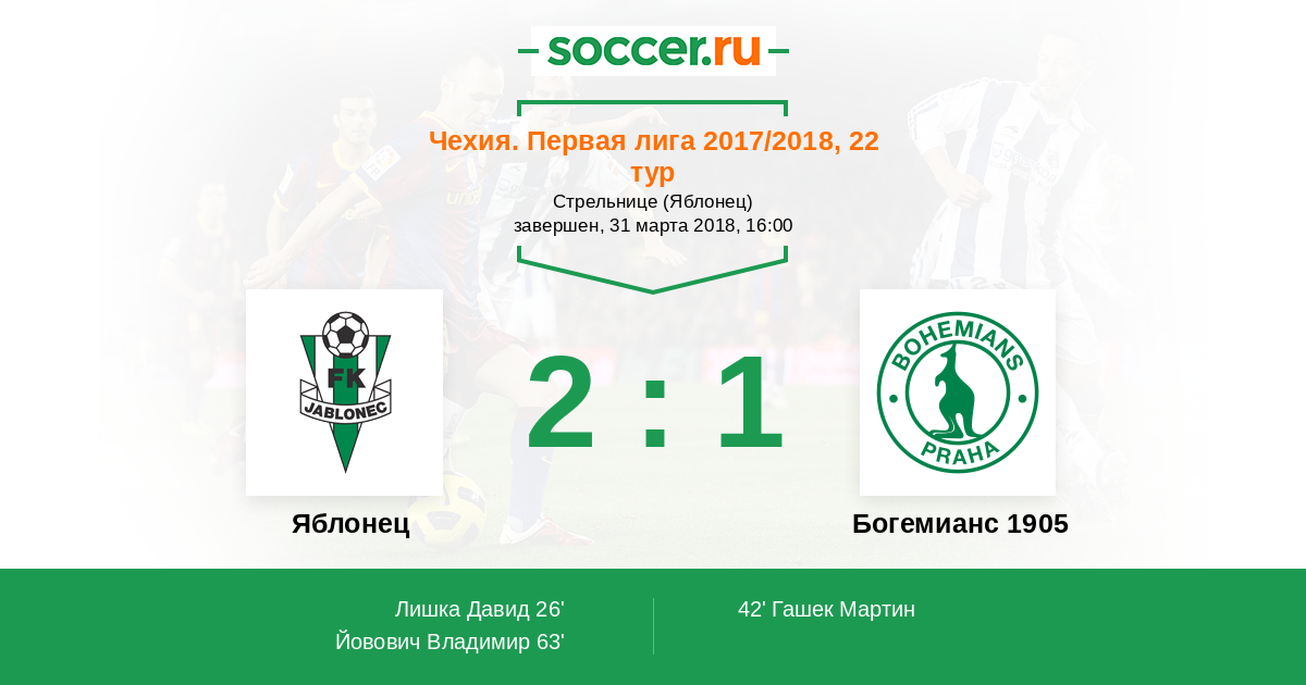 Яблонец - Богемианс 1905: обзор матча 31 марта 2018
