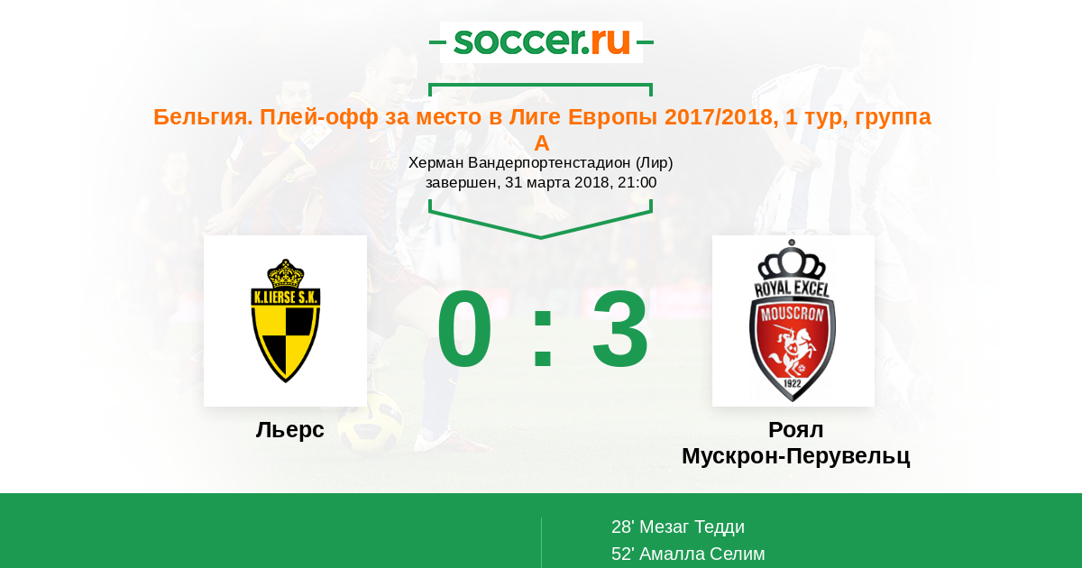 Льерс - Роял Мускрон-Перувельц: обзор матча 31 марта 2018