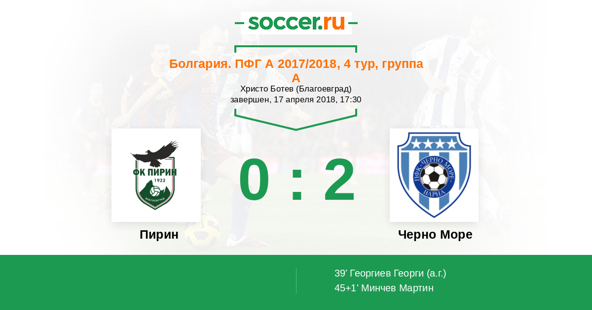 Пирин - Черно Море: обзор матча 17 апреля 2018