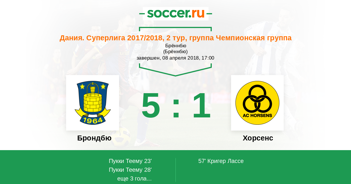 Брондбю - Хорсенс: обзор матча 8 апреля 2018