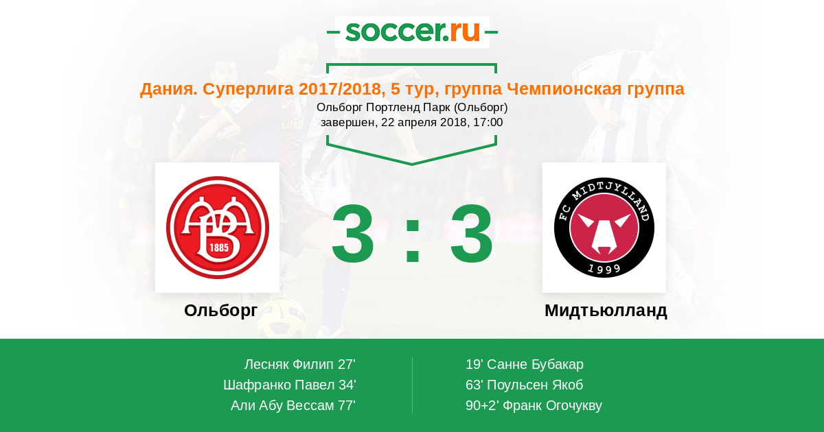 Ольборг - Мидтьюлланд: обзор матча 22 апреля 2018