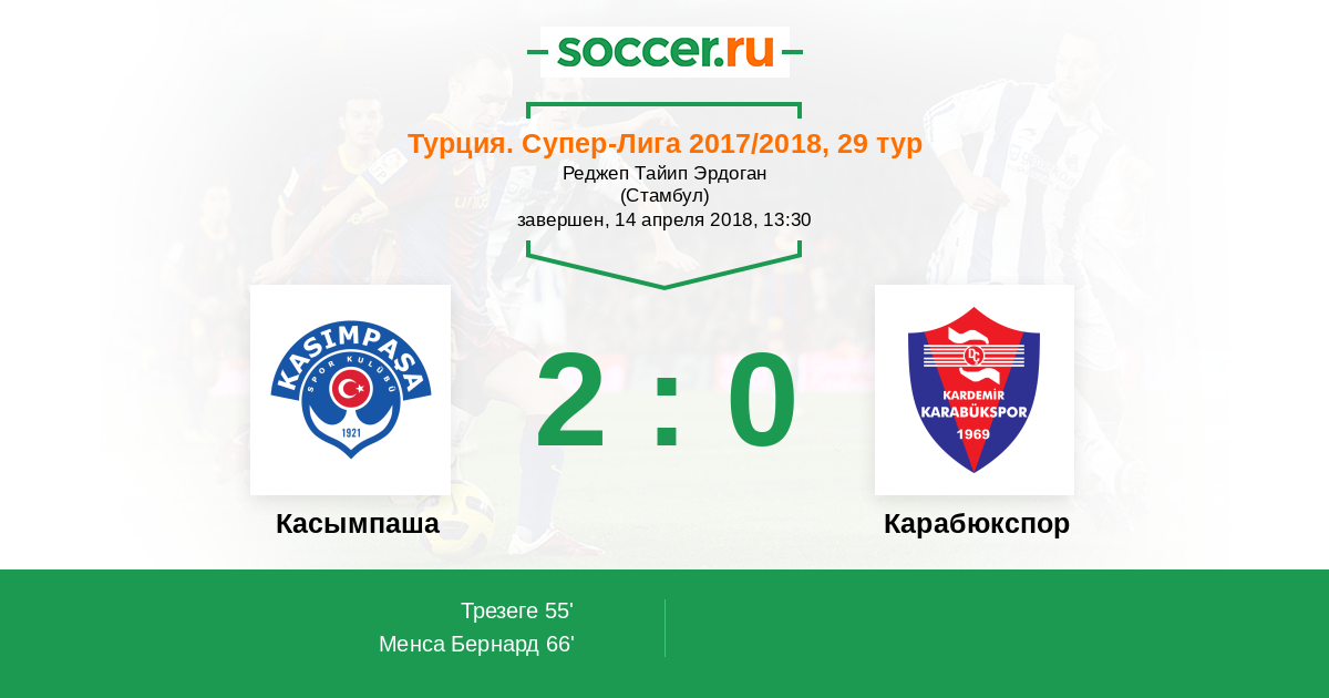Касымпаша - Карабюкспор: обзор матча 14 апреля 2018