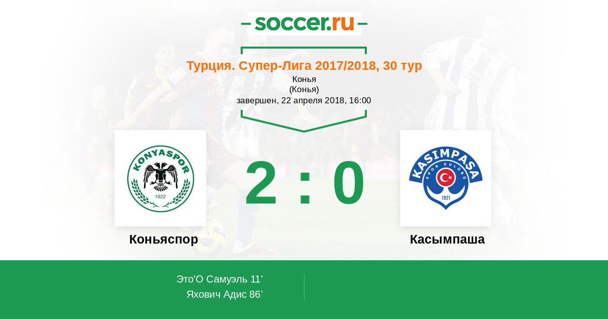 Коньяспор - Касымпаша: обзор матча 22 апреля 2018