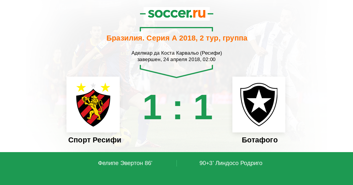 Спорт Ресифи - Ботафого: обзор матча 24 апреля 2018