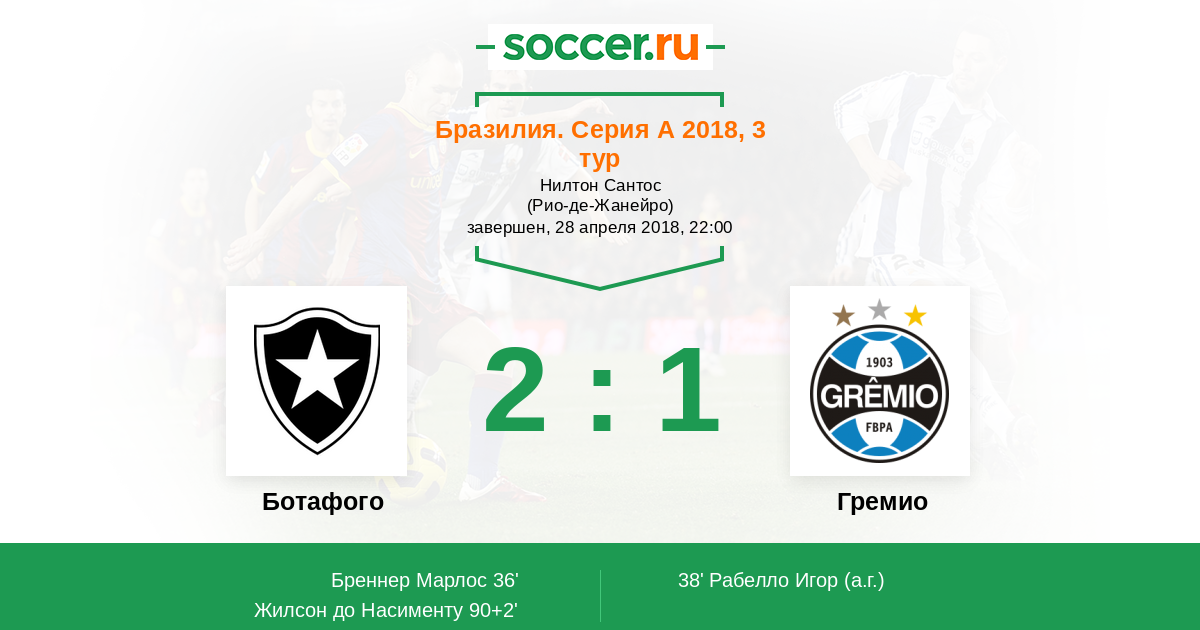 Ботафого - Гремио: обзор матча 28 апреля 2018