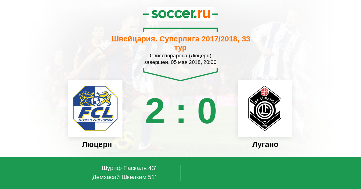 Люцерн - Лугано: обзор матча 5 мая 2018
