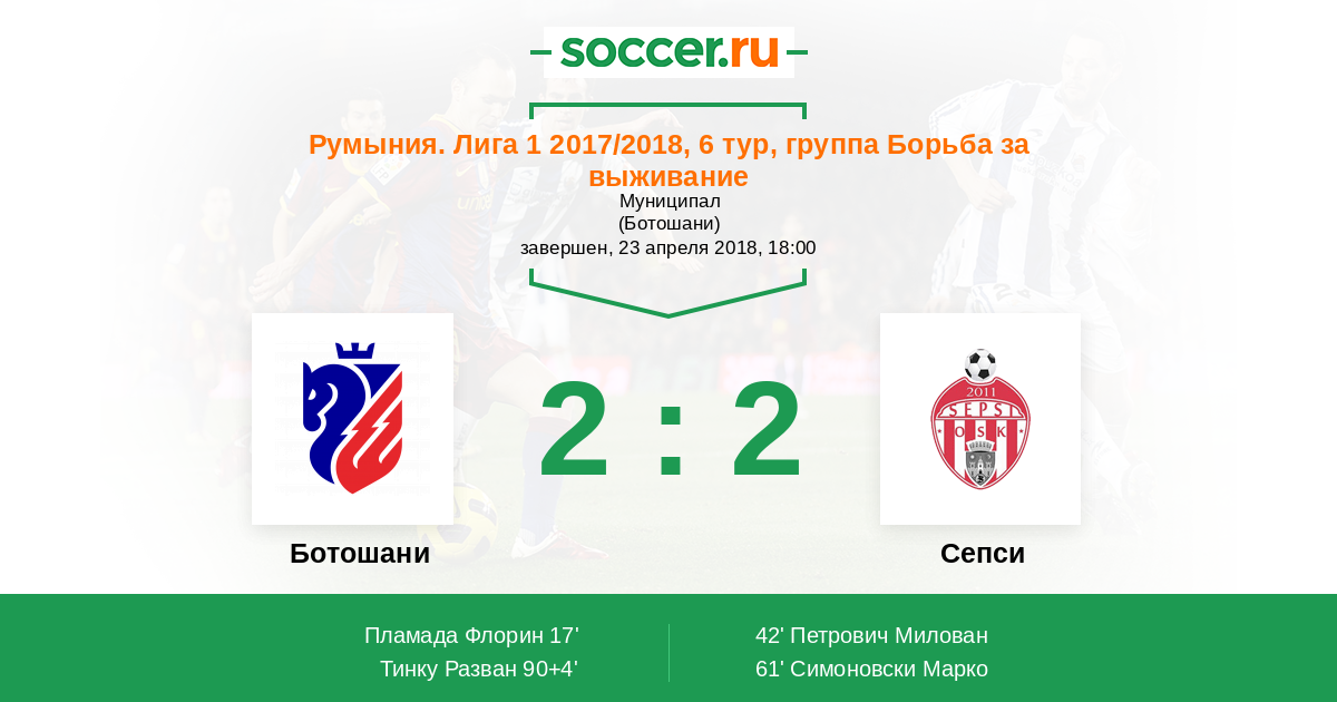 Ботошани - Сепси: обзор матча 23 апреля 2018
