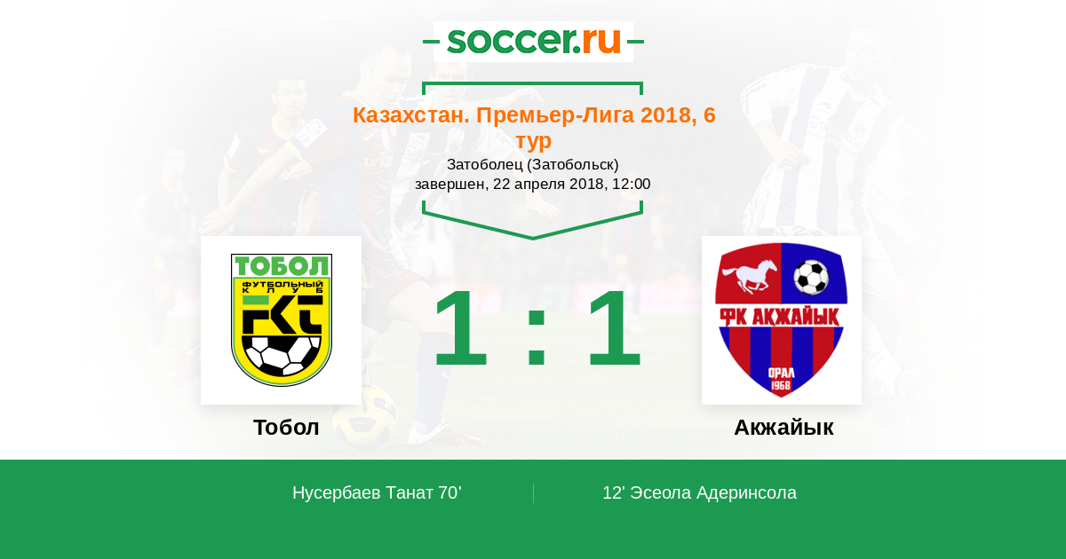 Тобол - Акжайык: обзор матча 22 апреля 2018