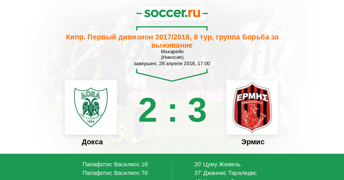 Докса - Эрмис: обзор матча 28 апреля 2018