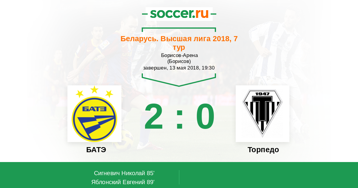 БАТЭ - Торпедо: обзор матча 13 мая 2018