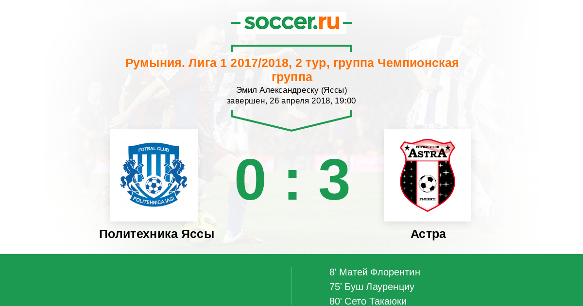 Политехника Яссы - Астра: обзор матча 26 апреля 2018