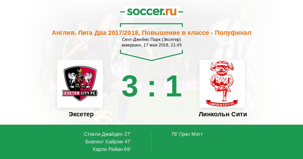 Эксетер - Линкольн Сити: обзор матча 17 мая 2018