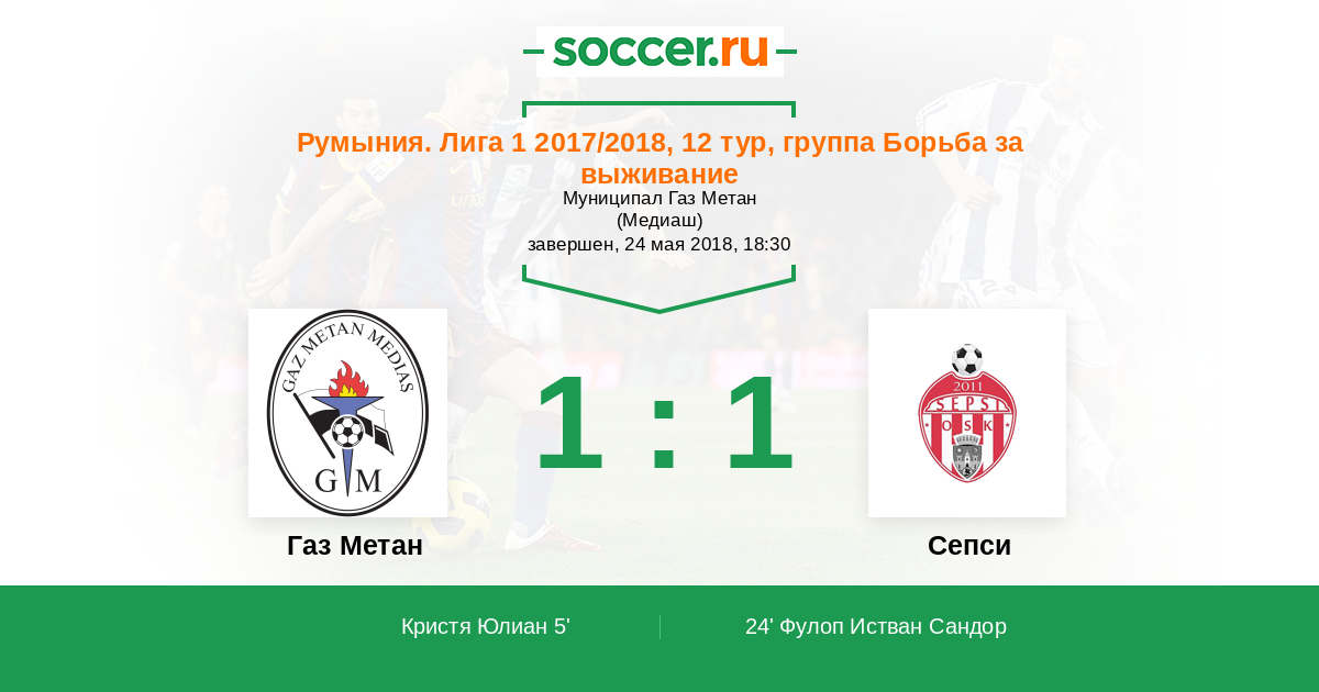 Газ Метан - Сепси: обзор матча 24 мая 2018