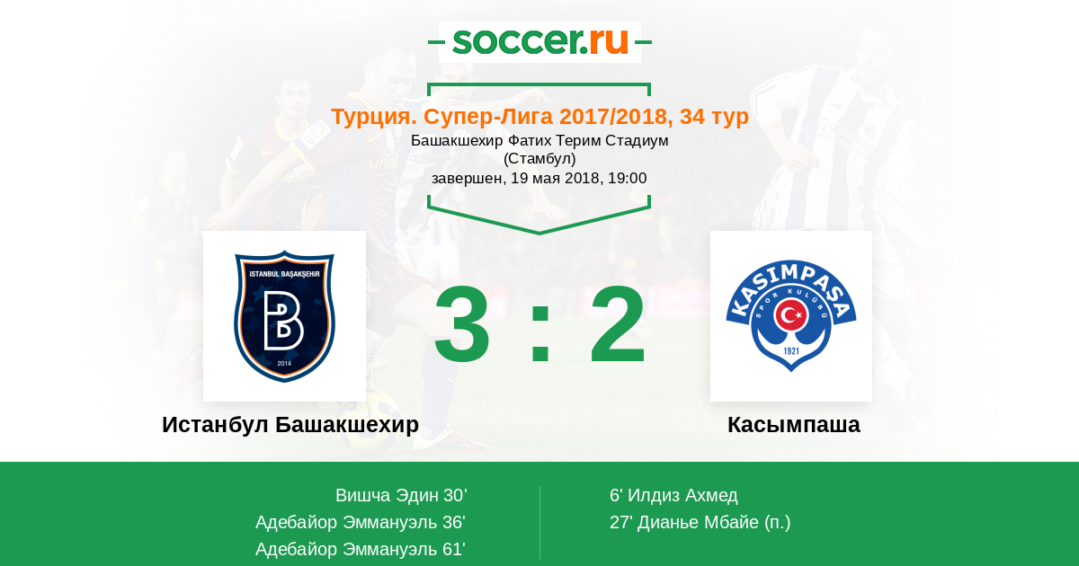 Истанбул Башакшехир - Касымпаша: обзор матча 19 мая 2018