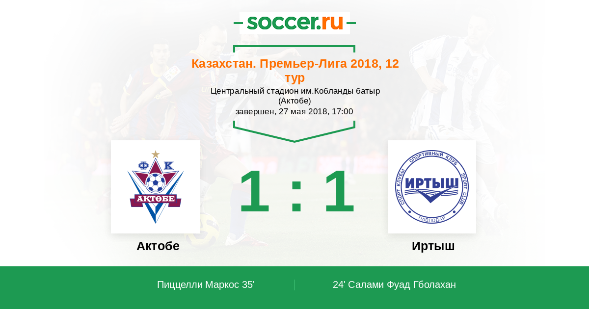 Актобе - Иртыш: обзор матча 27 мая 2018