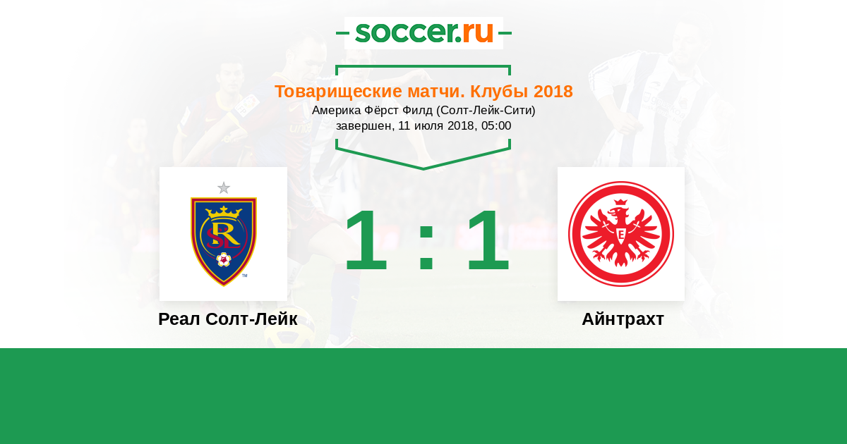 Реал Солт-Лейк - Айнтрахт: обзор матча 11 июля 2018