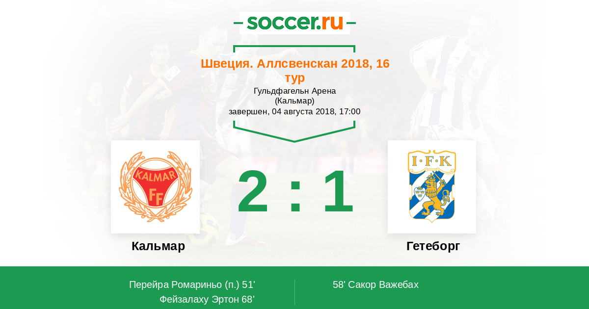 Кальмар - Гетеборг: обзор матча 4 августа 2018