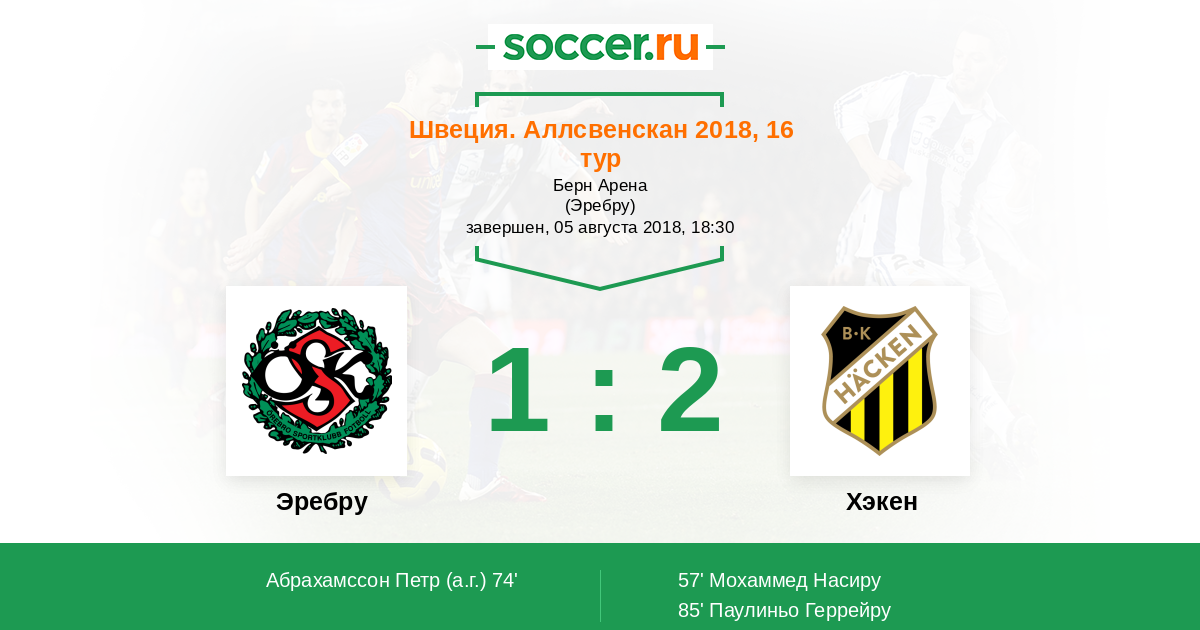 Эребру - Хэкен: обзор матча 5 августа 2018