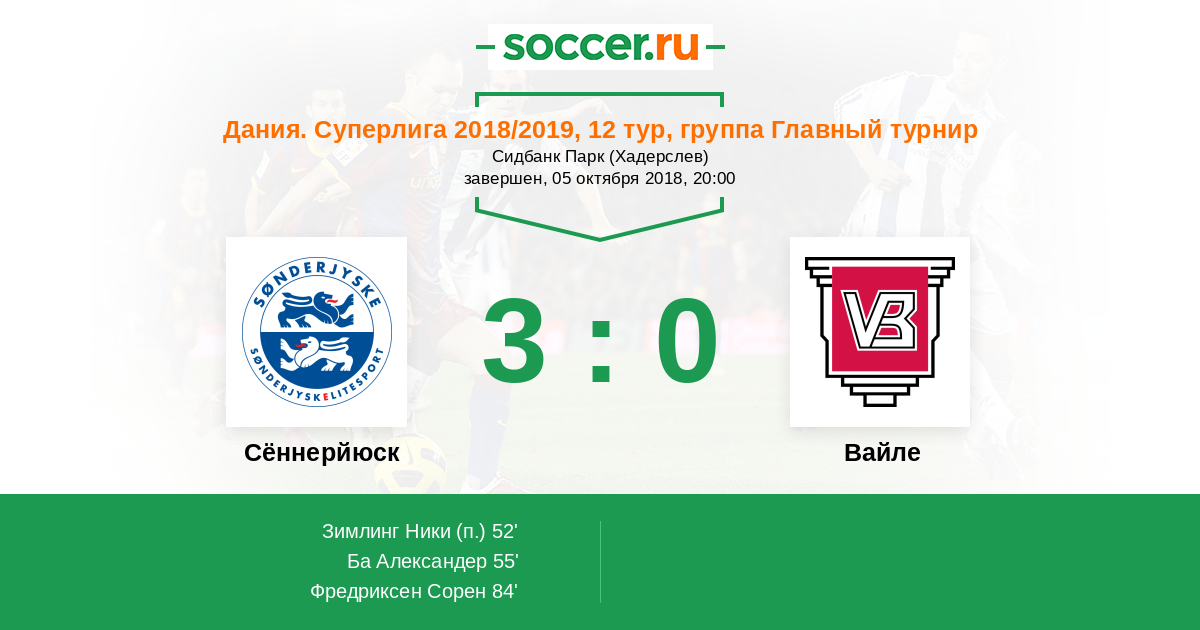 Сённерйюск - Вайле: обзор матча 5 октября 2018