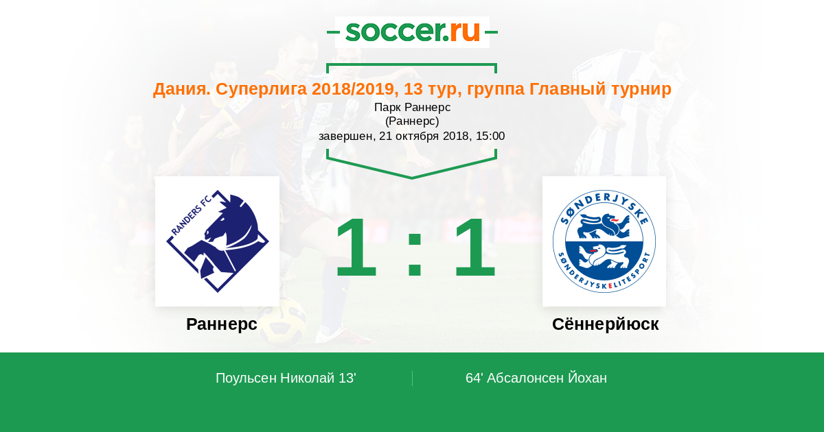 Раннерс - Сённерйюск: обзор матча 21 октября 2018